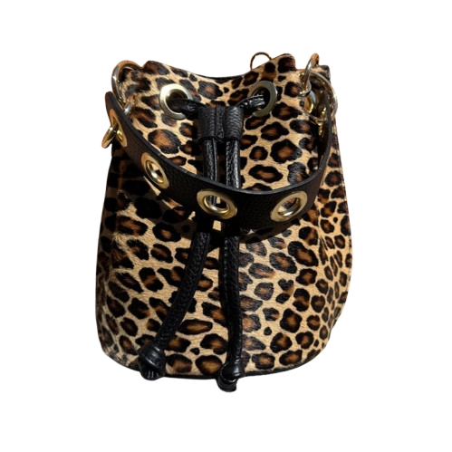 Bolso Bombonera de Piel con Ojales doradas en Marrón Chocolate o Leopardo.