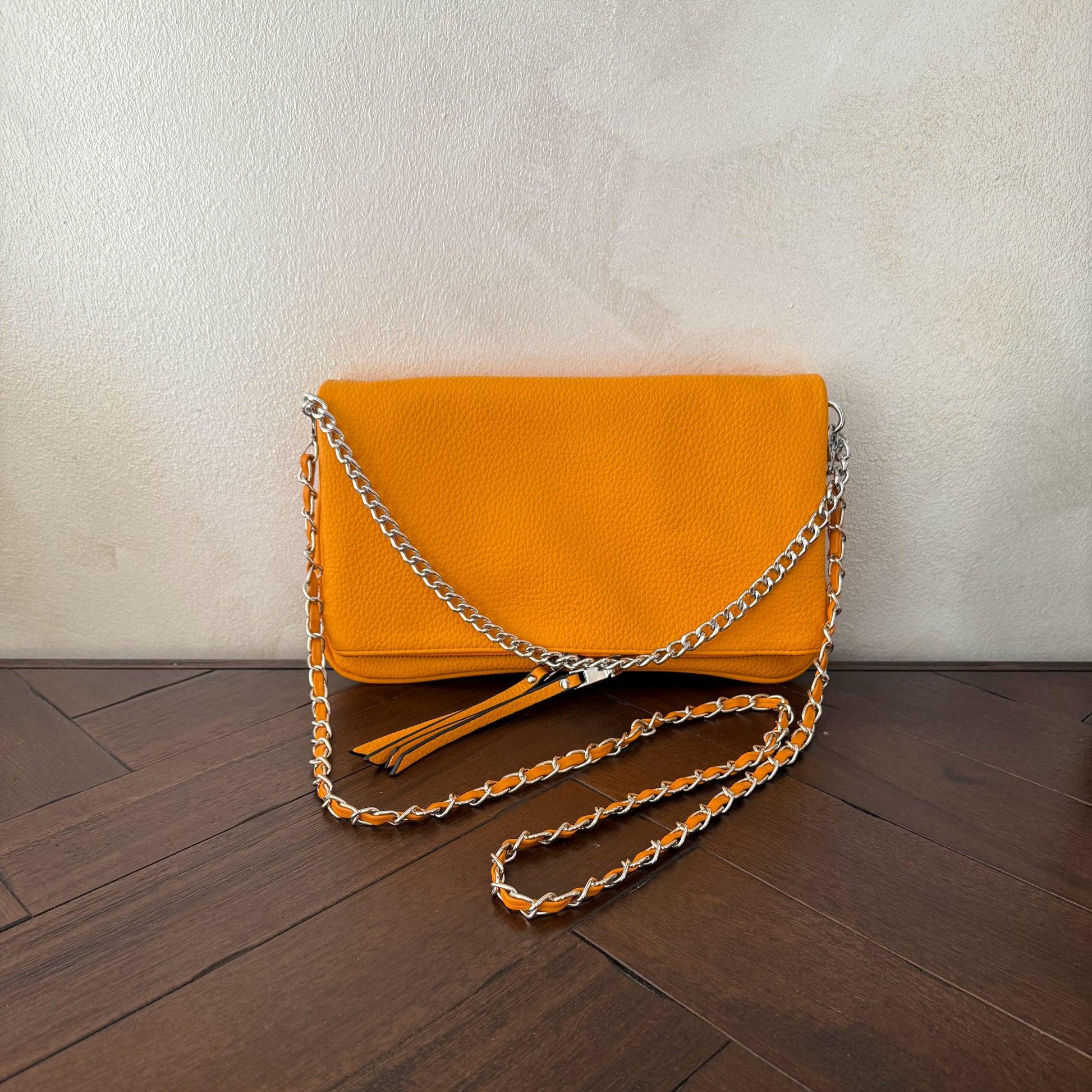 ✔ Asa de cadena metálica con detalle entrelazado en el mismo tono del bolso.