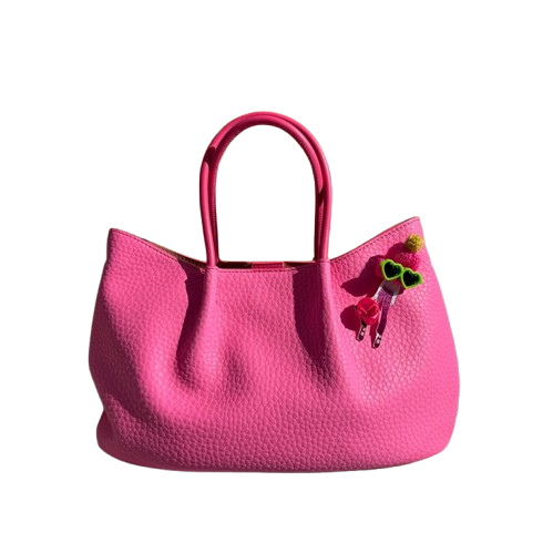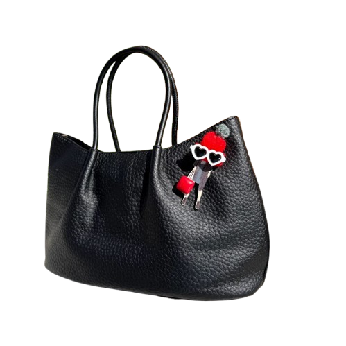 Aporta un toque de alegría a tu look con este bolso shopper de diseño minimalista y textura suave. Su tamaño te permite llevar todo lo que necesites en tu día a día, mientras que el charm decorativo le da un aire divertido y original. Disponible en varios colores para combinar con cualquier outfit, es perfecto tanto para diario como para salidas informales.