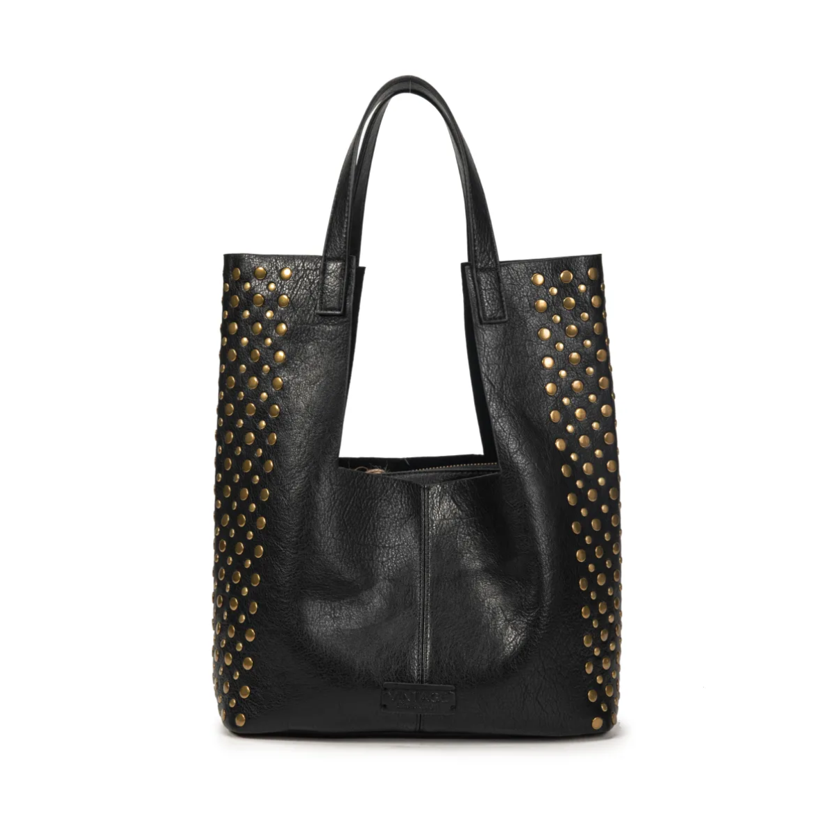 Luce un estilo moderno y funcional con este bolso shopper disponible en varios colores. Su diseño en acabado efecto piel está decorado con tachuelas metálicas en los laterales, que le dan un toque atrevido y elegante. Incluye un práctico neceser interior con cremallera para guardar tus objetos más pequeños y mantener todo organizado. Ligero, espacioso y perfecto para el día a día, combina fácilmente con looks casuales o más arreglados.