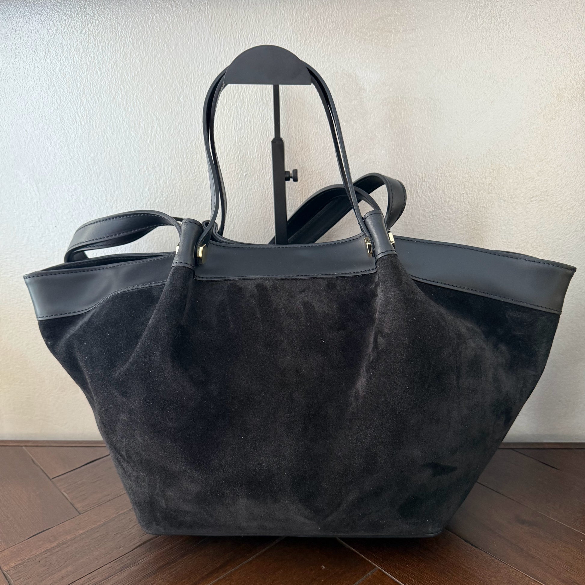 Bolso shopper de ante y asas cortas y largas de piel fabricado en Italia