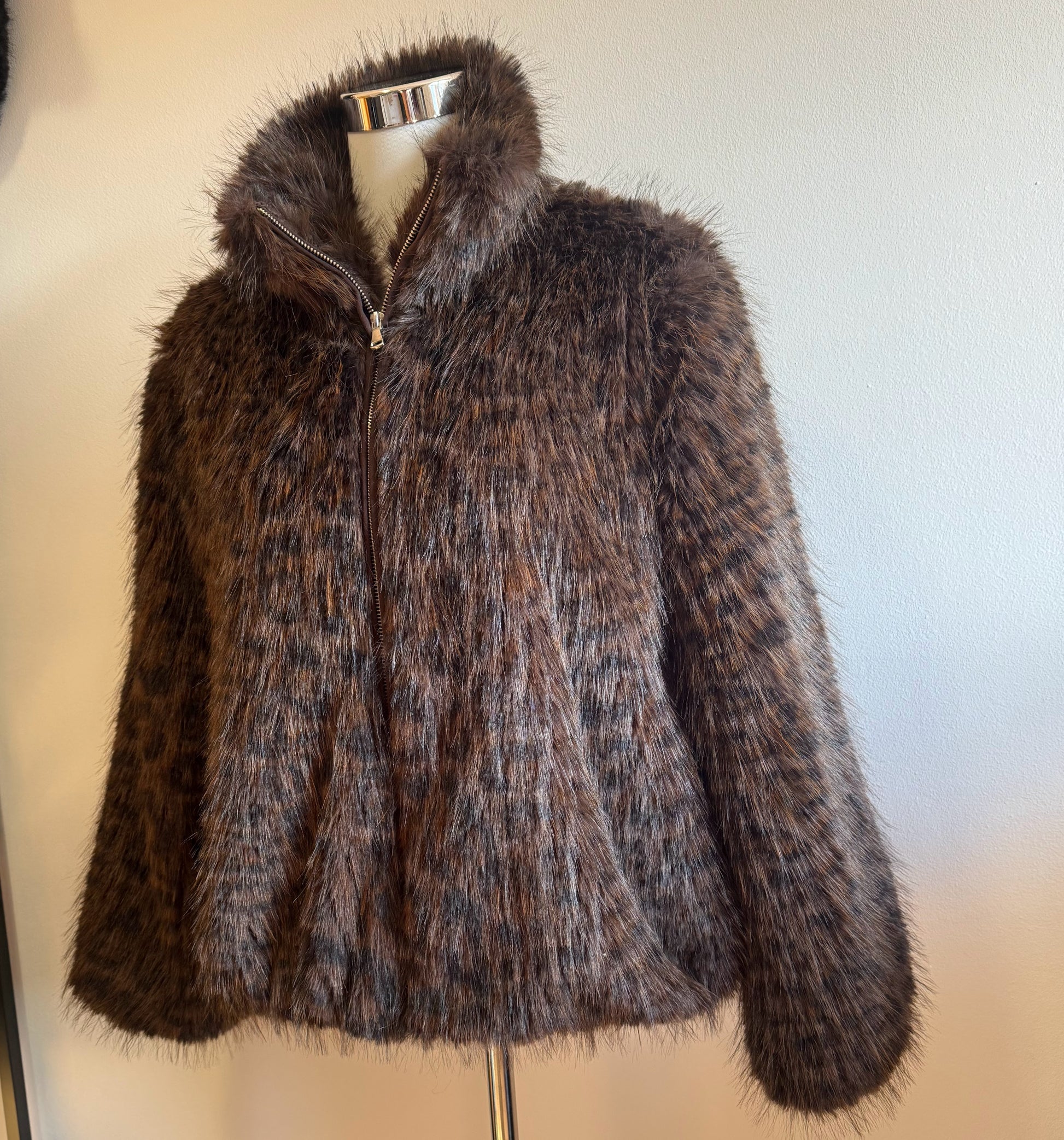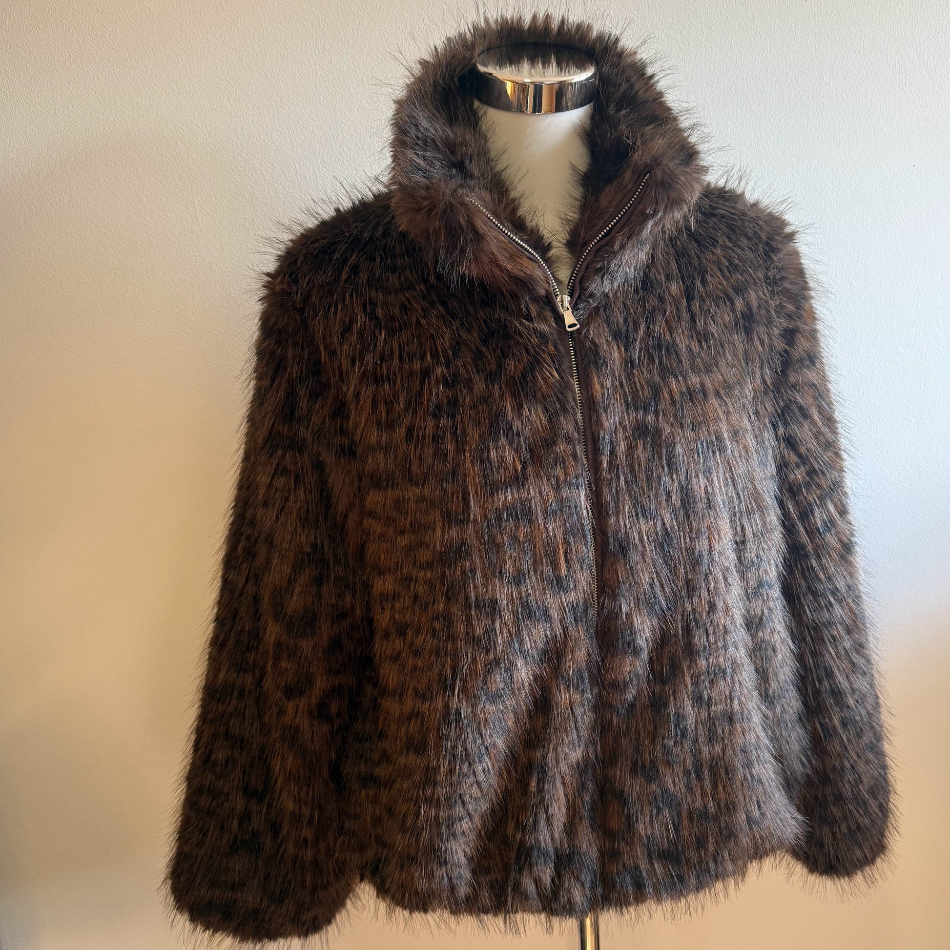Chaqueta de animal print pelo suave en color marrón.