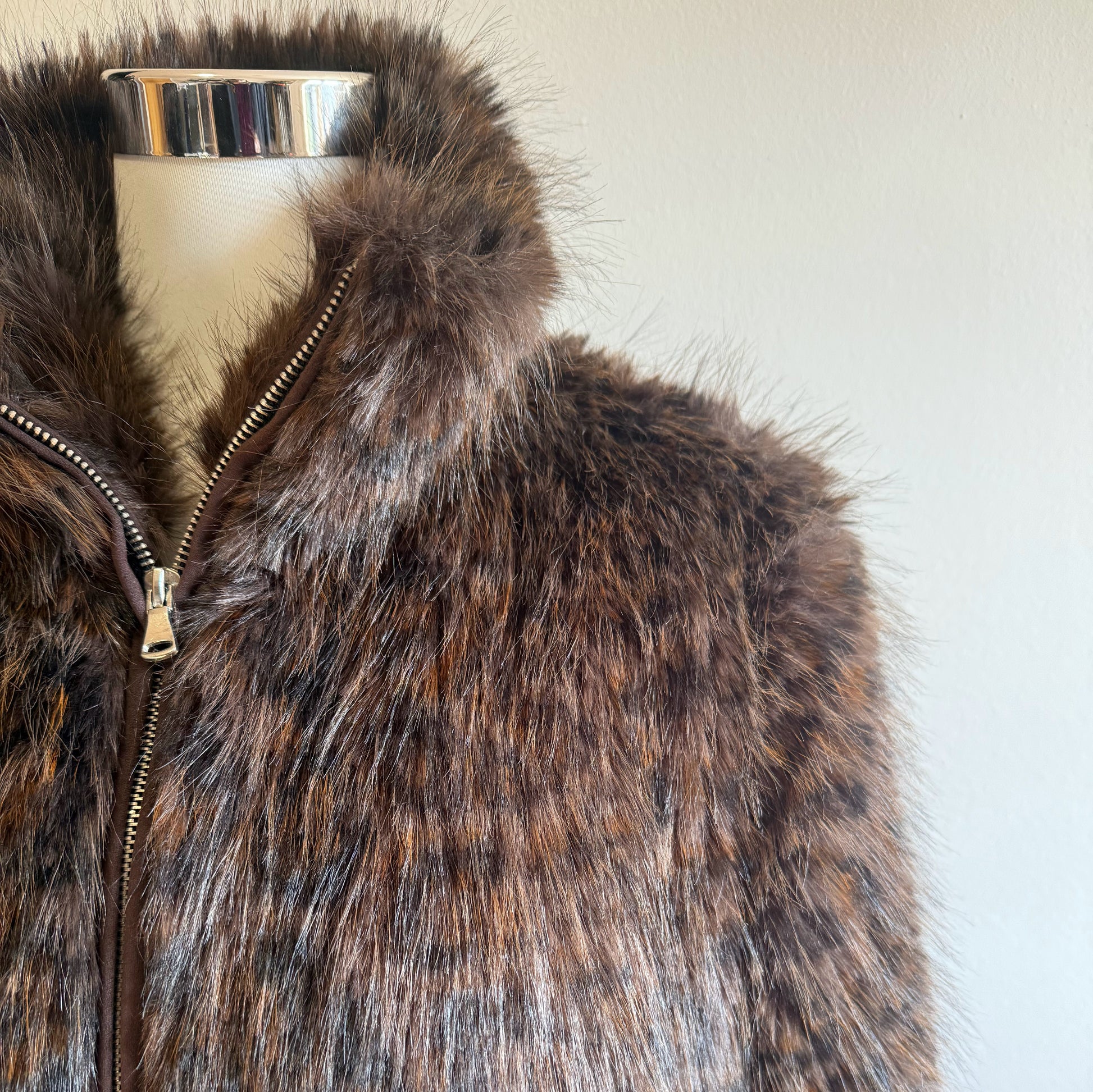 Luce un estilo elegante y acogedor con esta chaqueta de pelo sintético super suave en tono marrón con efecto animal print con bolsillos. Su diseño con cremallera frontal te ofrece máxima comodidad y calidez para los días fríos, sin renunciar al estilo. Su tacto extra suave y aspecto sofisticado la convierten en la prenda ideal para combinar con tus looks casuales o de noche. Perfecta para destacar en invierno con un toque chic y moderno.